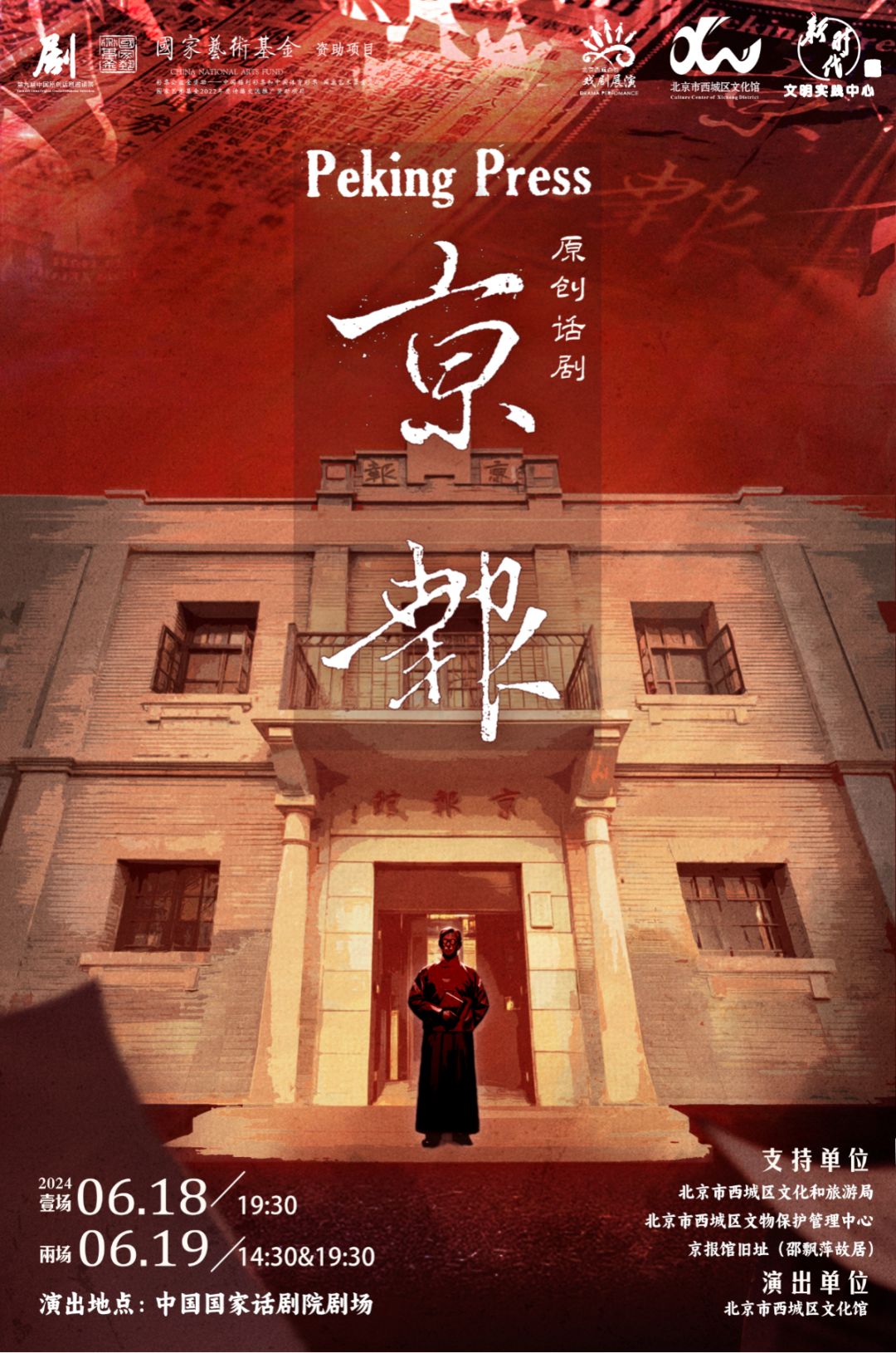 作为第九届中国原创话剧邀请展中唯一的群众戏剧,原创话剧《京报》是全国首部以邵飘萍为故事原型,重现《京报》创办历史的剧目。该剧将文物保护和话剧艺术相结合,赓续红色血脉,用活红色资源,将于6月18日至19日在中国国家话剧院大剧场上演。