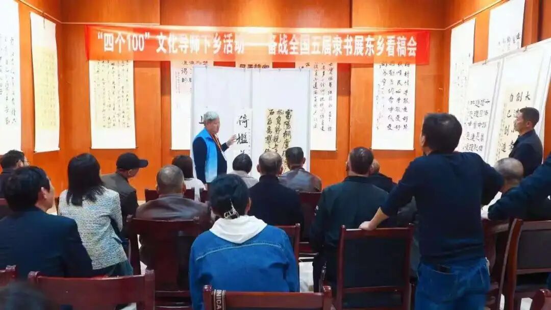 4月2日,省级文艺导师张英俊在东乡区博物馆举办“四个100”文化导师下乡活动——备战全国第五届隶书展东乡看稿会,帮助作者提升文本规范性,确保作品在艺术性与学术性上同步达标,为全国第五届隶书展做好充分准备。